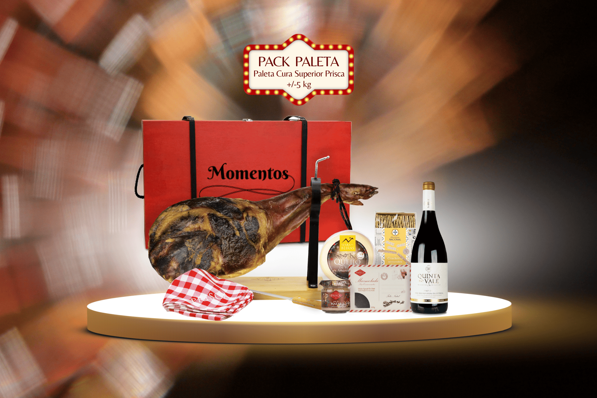 O Pack Paleta reúne uma seleção especial da Companhia dos Cabazes: uma paleta de cura superior, vinhos portugueses, queijos, compotas e acompanhamentos premium.